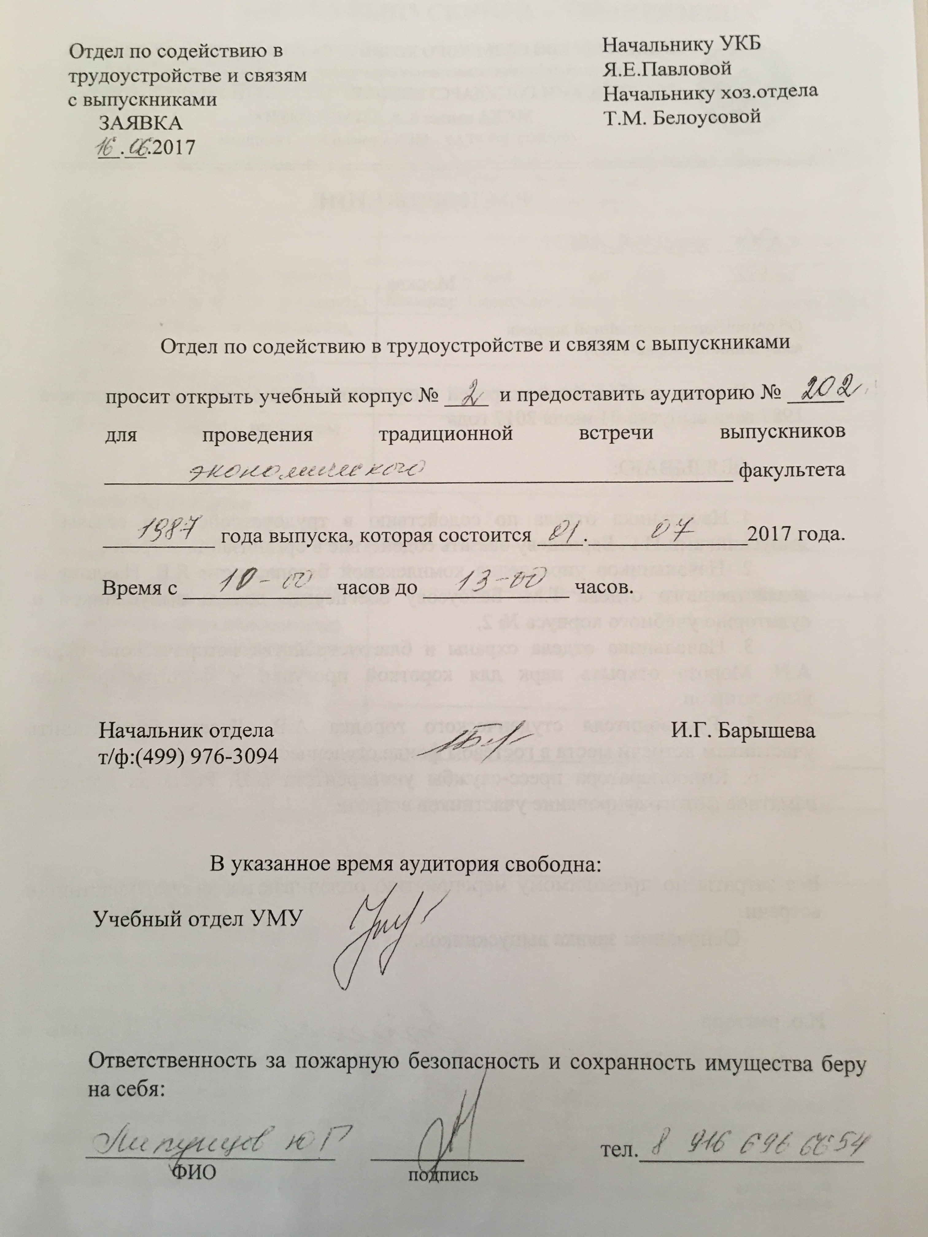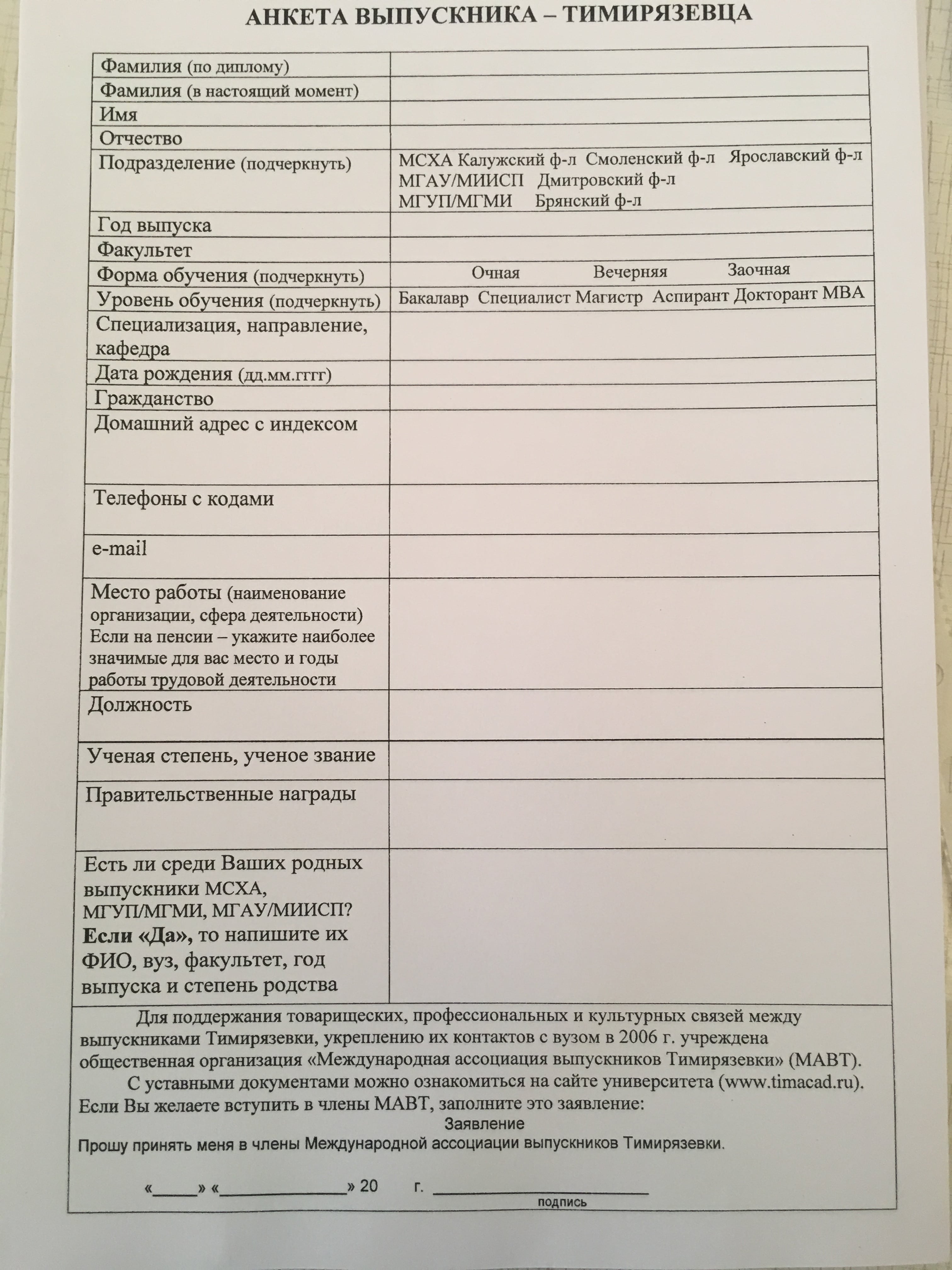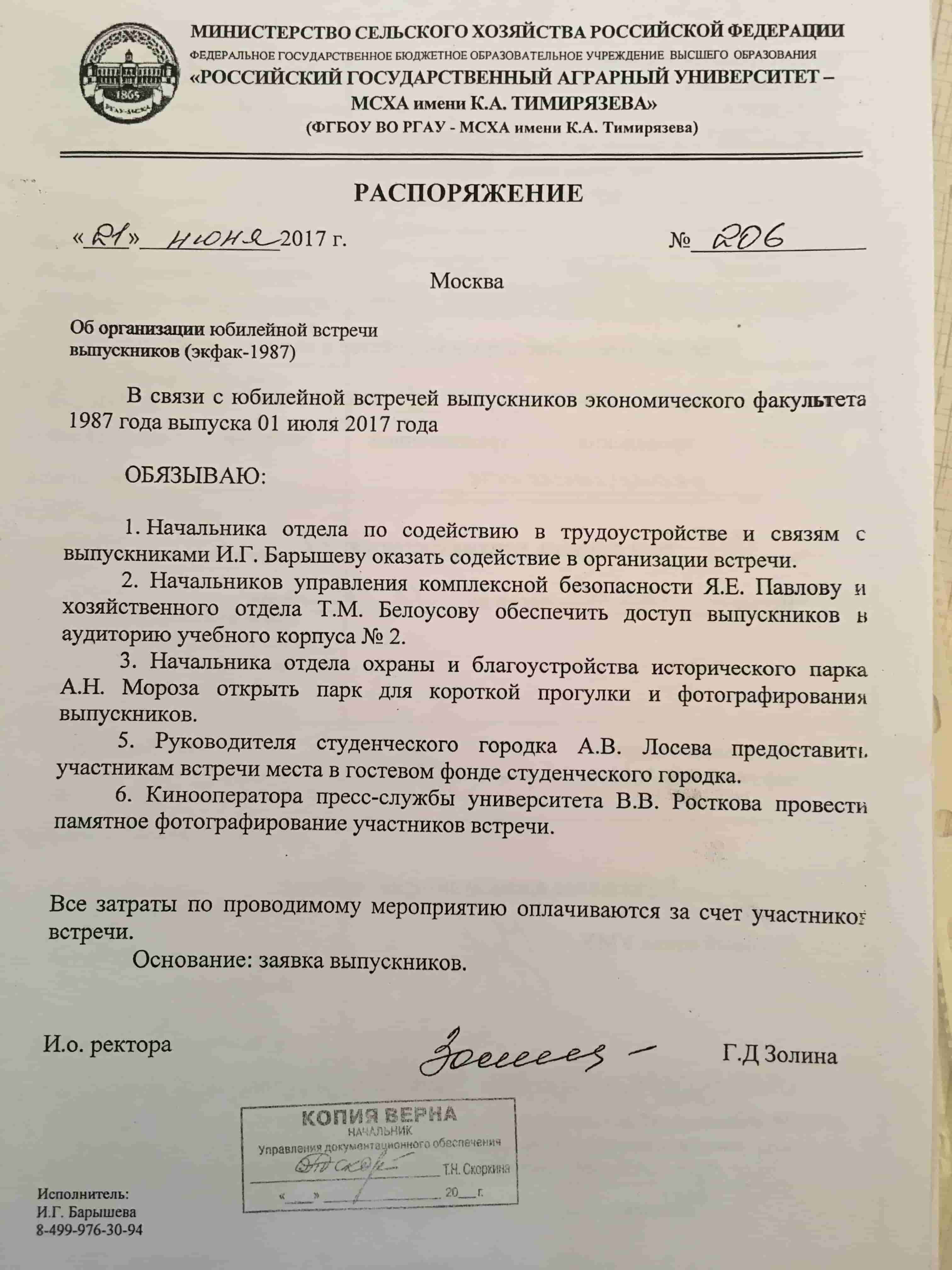 Встреча проводится при поддержке Отдела по связям с выпускниками МСХА. Для организации встречи было подготовлено распоряжение за подписью ректора, выпущены другие сопутсвующие документы. Отдел по связям с выпускниками просил заполнить анкеты, которые завтра мы раздадим.